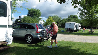 Loading up the bikes,we don't need to cover them, the distance we're driving, no rain in the forecast.I don't think Otis realizes he's not on a leash as we finish getting ready to roll???